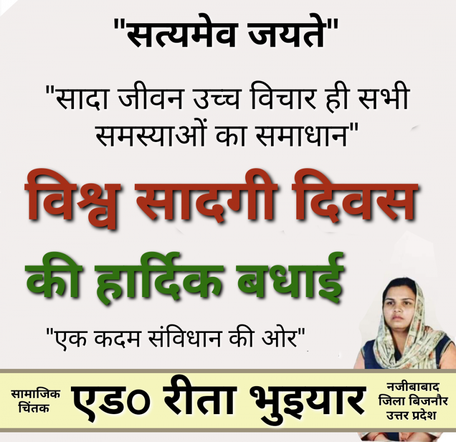 सादा जीवन उच्च विचार ही सभी समस्याओं का संधान है सभी देश वासियों को सादगी दिवस की हार्दिक बधाई