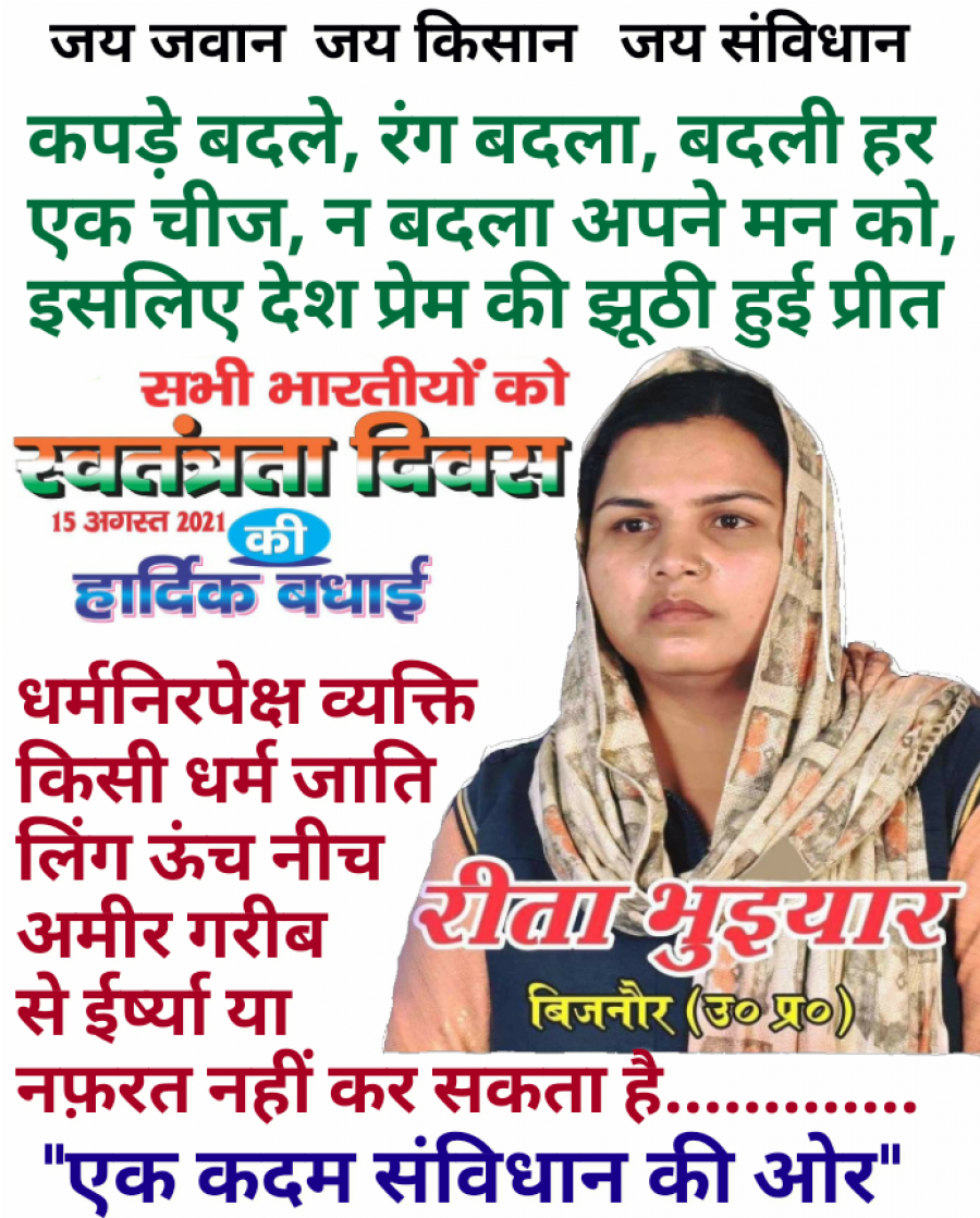 Aug 14, 2021वैसे आज कहने को हम स्वतंत्रता दिवस मना रहे है, लेकिन आज हमारी आजादी को और विचारों को नज़र बंद कर लिया गया है, सभी भारतीयों को 1947 की स्वतंत्रता दिवस की हार्दिक बधाई Reeta Bhuiyar