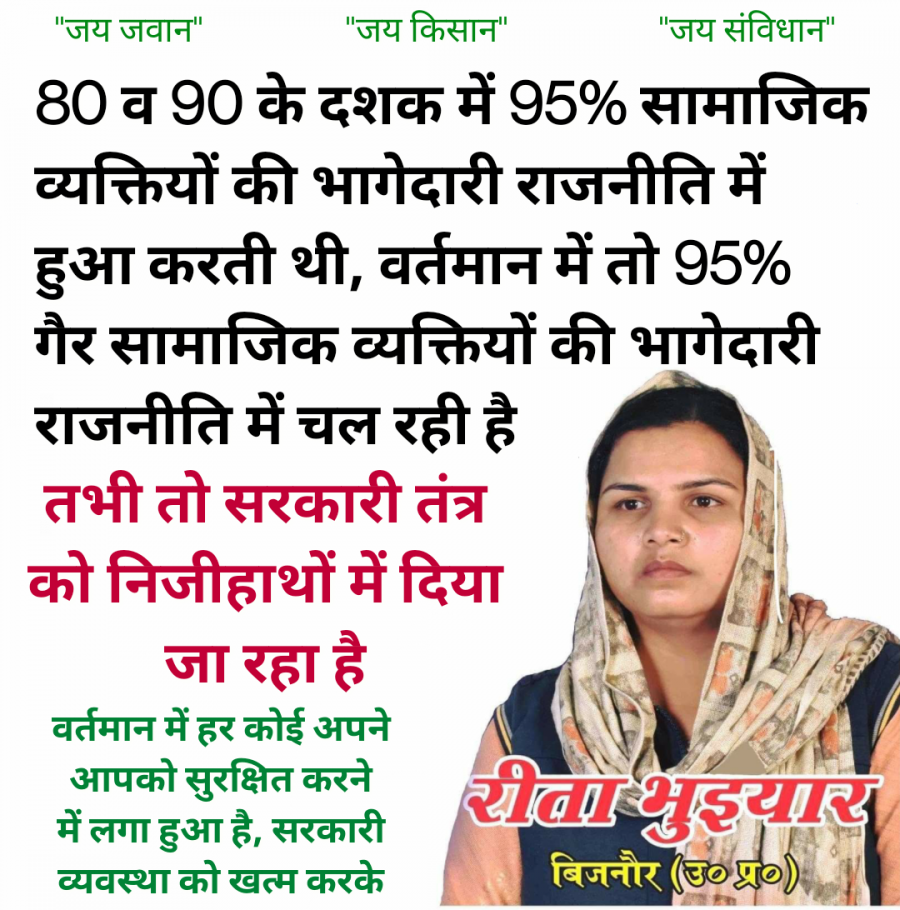 Jun 12, 2021राजनीति में सामाजिक भागेदारी न होने के कारण वर्तमान में कानून का दुरुपयोग