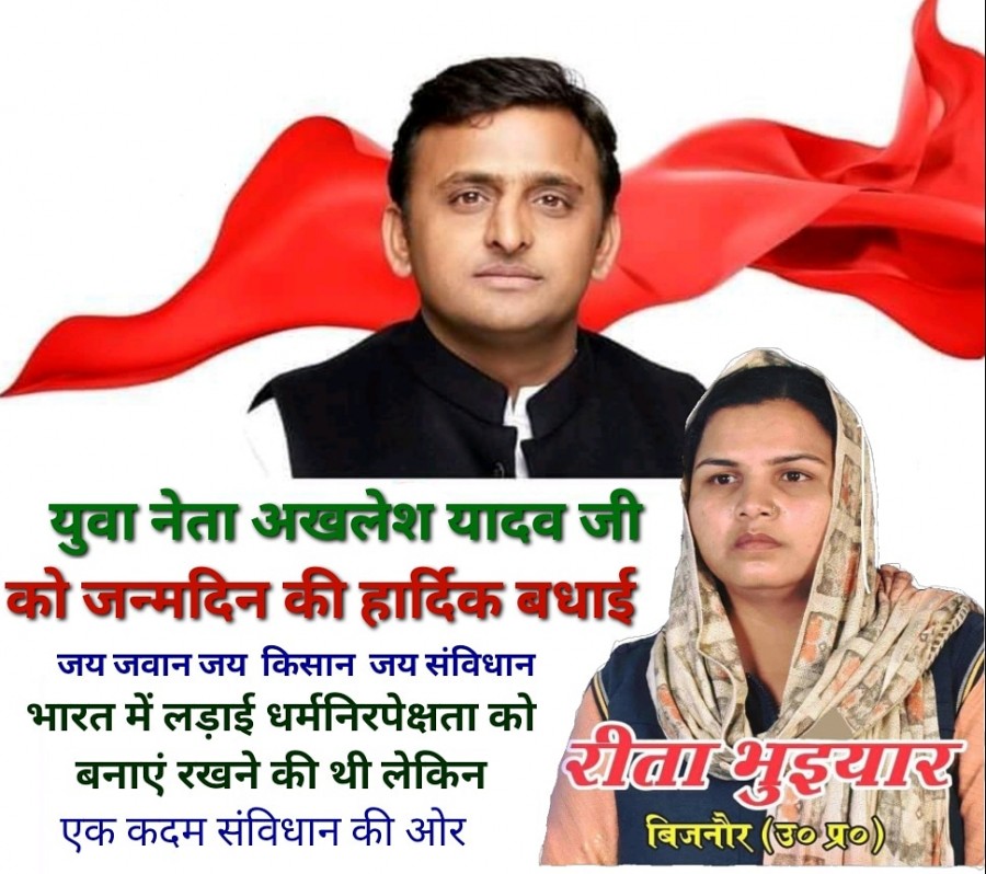 Jul 01, 2021युवा नेता अखलेश यादव जी को जन्मदिवस की हार्दिक बधाई, जनता को लोकतांत्रिक व्यवस्था को समझना चाहिए, जनता का भला धर्मनिरपेक्ष संवैधानिक विचारों की सरकार से होगा, न कि धर्म जाति की विचार धारा वाली सरकार से।