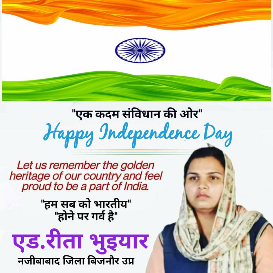 Aug 14, 2023माननीय श्रीमान जी/श्रीमति जी आपको तथा आपके सभी परिवार को मेरा हाथ जोड़कर प्रणाम। *“भारत के संवैधानिक पर्व स्वतंत्रता दिवस की आप सभी को हार्दिक बधाई”* हम भारत के लोग भिन्न भिन्न भाषा संस्कृति धर्मजाति अमीर गरीब होने के बाव