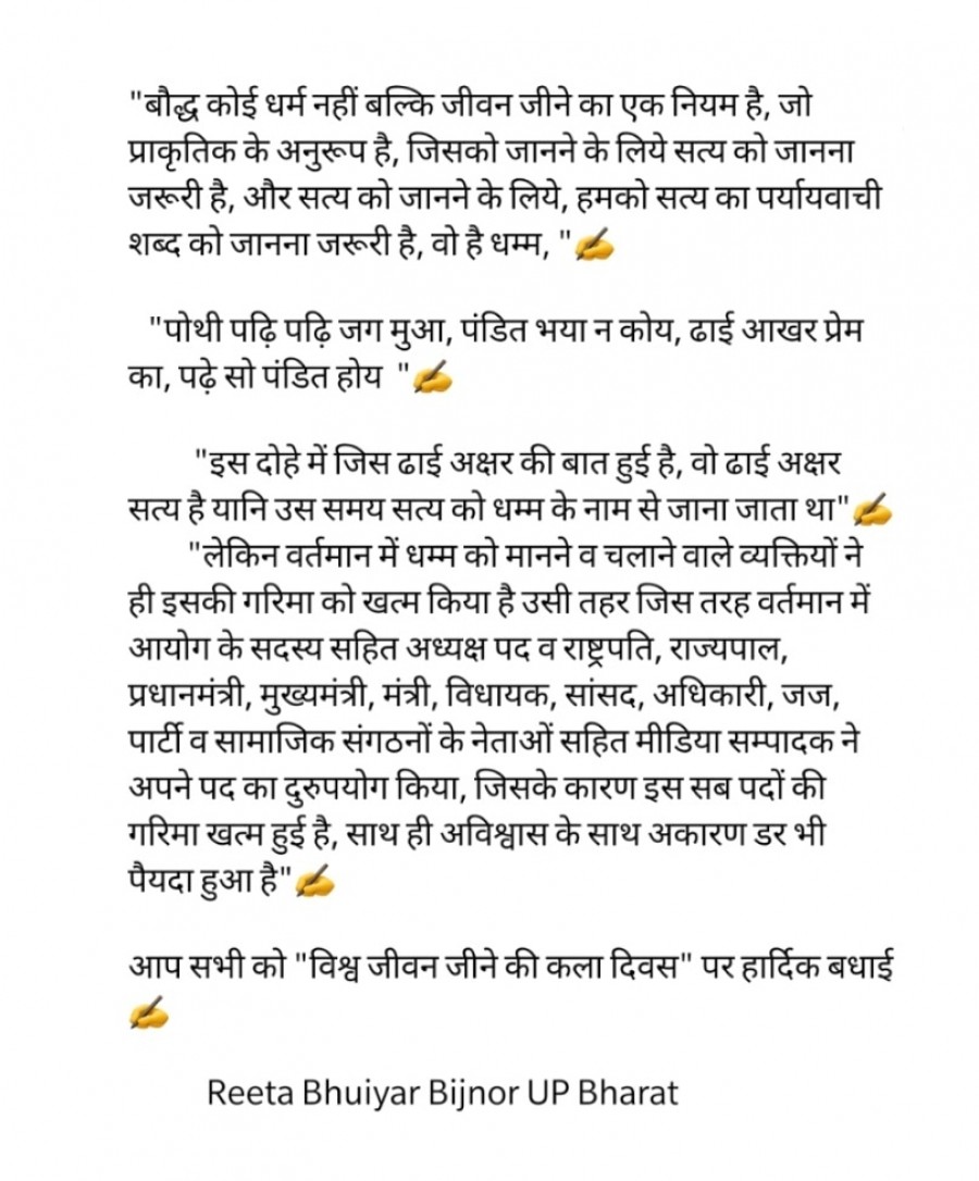 आप सभी को "विश्व जीवन जीने की कला दिवस" पर हार्दिक बधाई✍️
