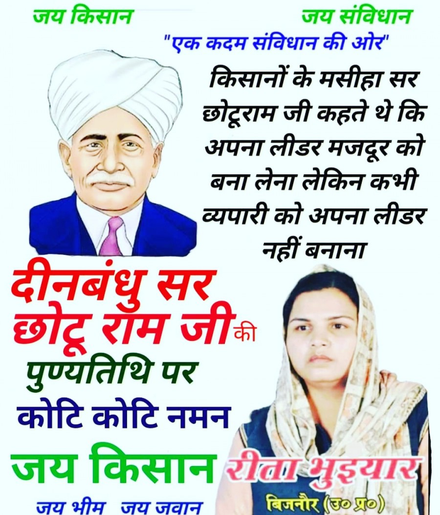 दीनबंधु सर छोटूराम जी की पुण्यतिथि पर कोटि कोटि नमन रीता भुइयार