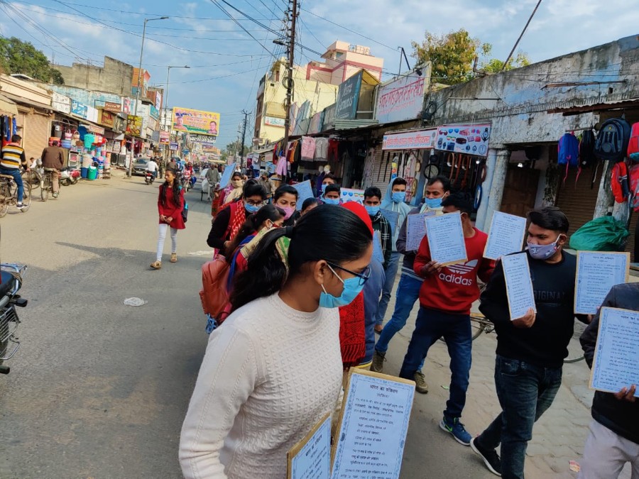 आज शक्ति चौक बिजनौर से विकास भवन तक संविधान जागरूकता व कोरोना जागरूकता मार्च निकाला गया कार्यक्रम मे