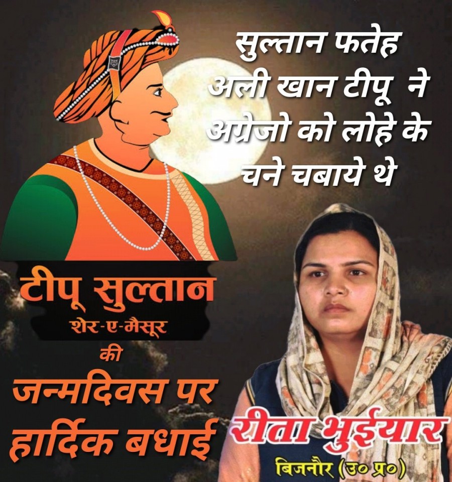 Nov 20, 2020सुल्तान फतेह अली खान टीपू के जन्म दिवस पर हार्दिक बधाई... उन्होंने भारत की आजादी के लिऐ अग्रेजो को लोहे के चने चबाये थे..