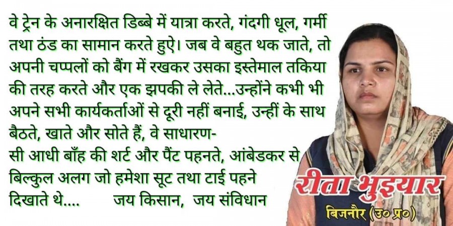 Oct 18, 2020वे ट्रेन के अनारक्षित डिब्बे में यात्रा करते, गंदगी धूल, गर्मी तथा ठंड का सामान करते हुऐ। जब वे बहुत थक जाते, तो अपनी चप्पलों को बैंग में रखकर उसका इस्तेमाल तकिया की तरह करते और एक झपकी ले लेते...उन्होंने कभी भी अपने सभी कार्यकर्ताओं से दूरी नहीं बना