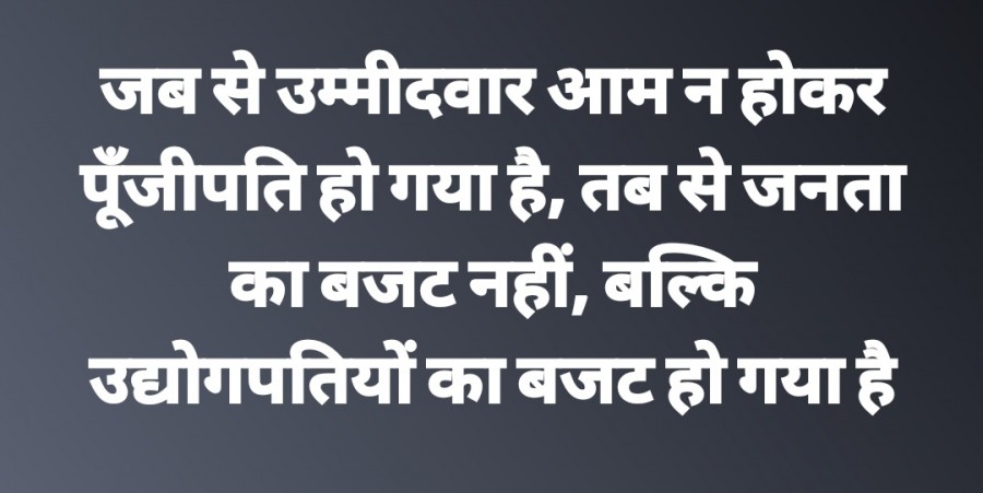 जब से उम्मीदवार आम न होकर पूँजीपति हो गया है, तब से जनता का बजट नहीं, बल्कि उद्योगपतियों का बजट हो