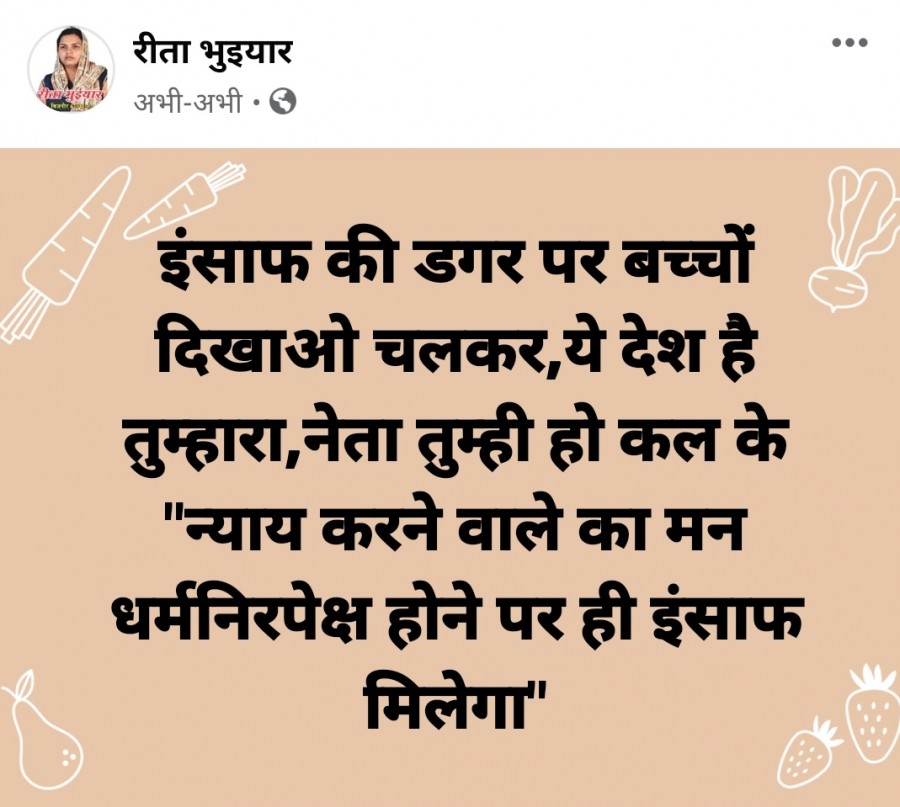 Jul 24, 2020इंसाफ की डगर पर बच्चों दिखाओ चलकर,ये देश है तुम्हारा,नेता तुम्ही हो कल के "न्याय करने वाले का मन धर्मनिरपेक्ष होने पर ही इंसाफ मिलेगा"