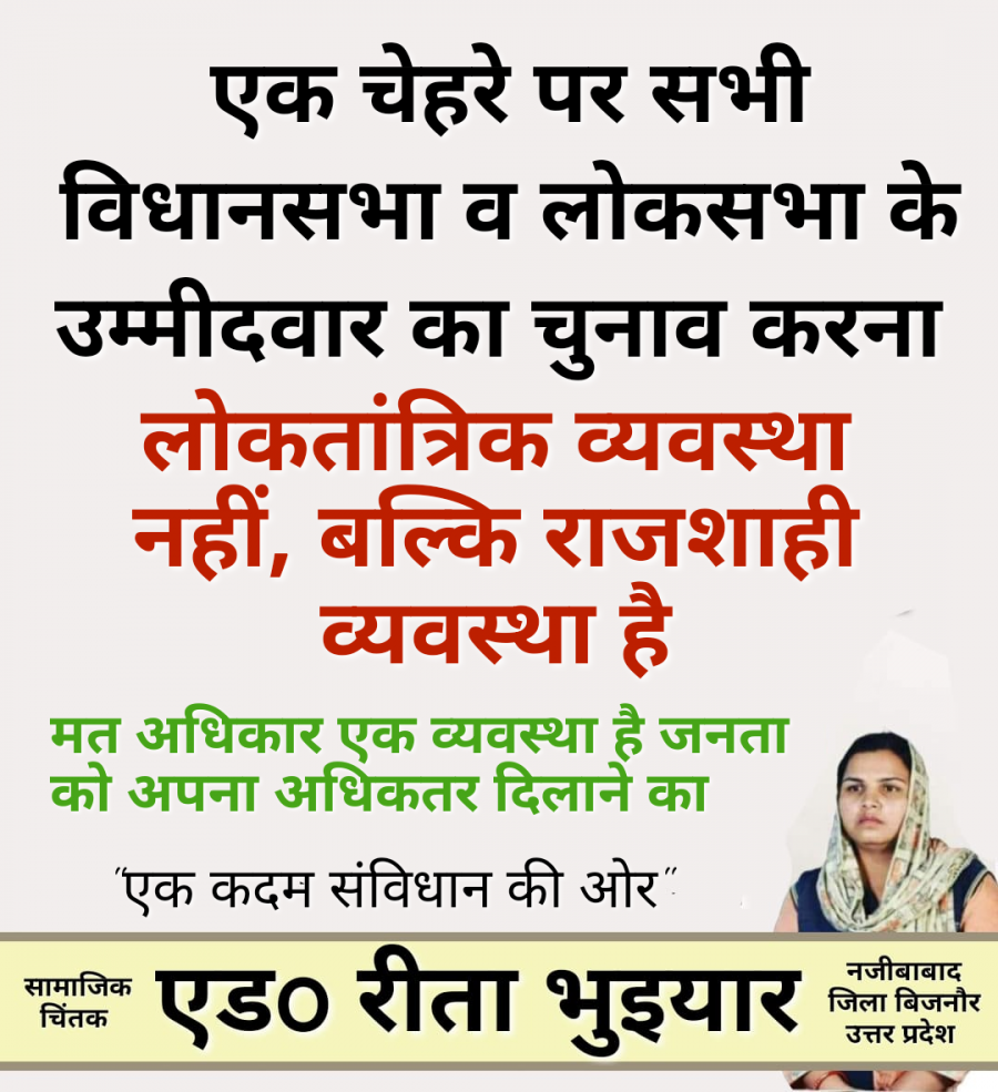 Jul 16, 2023पहले जनता अपने क्षेत्र के व्यक्ति का चुनाव करने से पहले उस उम्मीदवार का चरित्र व्यवहार ईमानदारी व समाज के प्रति उसका योगदान से साथ लगाव देखती थी, वर्तमान में जनता उम्मीदवार का धर्म जाति पार्टी और उसकी सम्पति देखकर चुनाव करती है, भले ही वो उम्मीदवार
