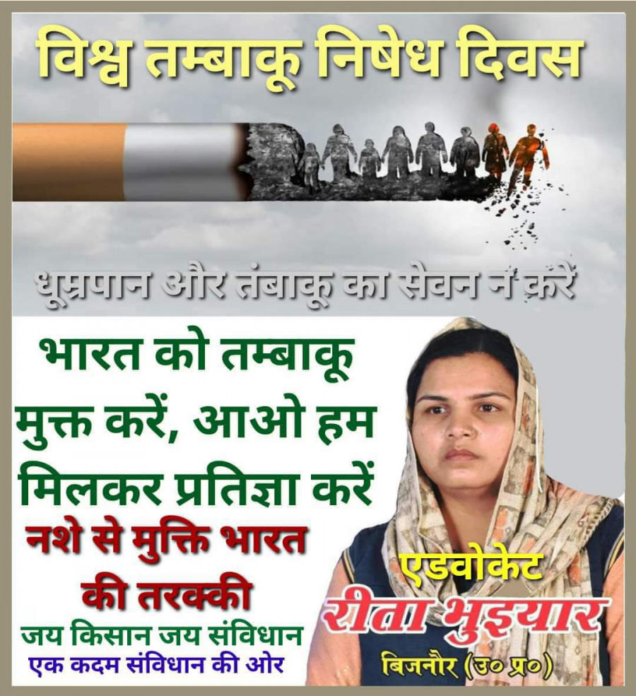 May 31, 2023जहाँ संसार भर में तम्बाकू की रोक पर WHO 41 वर्षो से भिन्न भिन्न कार्यक्रम चला रखे है, फिर भी भारत की जनता इस और गम्भीरता से ध्यान नहीं दे रही है, भारत में हर वर्ष 10 से एक व्यक्ति तम्बाकू के सेवन से मरता है, तथा संसार में भारत का प्रथम स्थान है, मुँह