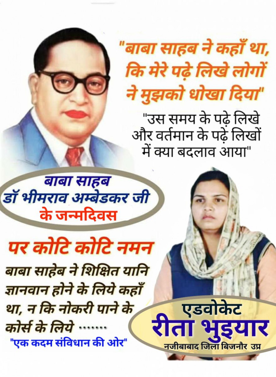 Apr 14, 2023नफरत पूर्व और वर्तमान में गैरबराबरी की थी, लेकिन जो बाबा सहाब का नाम लेकर आगे बढ़े क्या उनके अंदर गैरबराबरी की नफरत नहीं है, क्या बाबा सहाब को मानने वाले राजाशाही को स्थापित करने का काम नहीं कर रहे है, क्या जनता आज भी शिक्षा को स्वीकार कर पाई है, या
