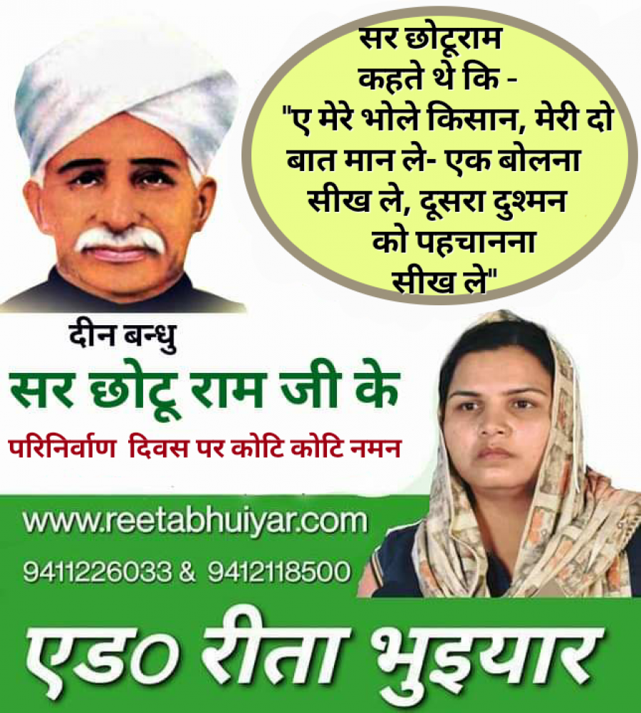 सर छोटू राम के परिनिर्वाण दिवस पर कोटि कोटि नमन