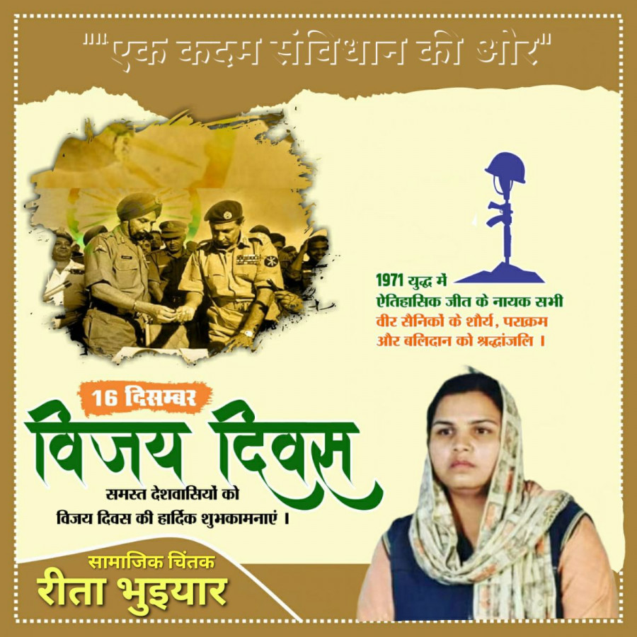 Dec 16, 2022लोकतंत्र में अपने अधिकारों के लिए मांग करना या बिना हथियार के विरोध करना, कानूनी अधिकार था और है, लेकिन मौखिक रूप से इसको नजरंदाज किया जा रहा है... जोकि लोकतांत्रिक व्यवस्था को बनाए रखने के लिए बाधक है.. विजय दिवस की सभी देश वासियों को हार्दिक शुभका