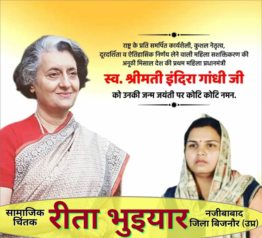 भारत की प्रथम महिला प्रधानमंत्री श्रीमती इंदिरा गांधी जी के जन्मदिवस पर कोटि कोटि नमन✍️