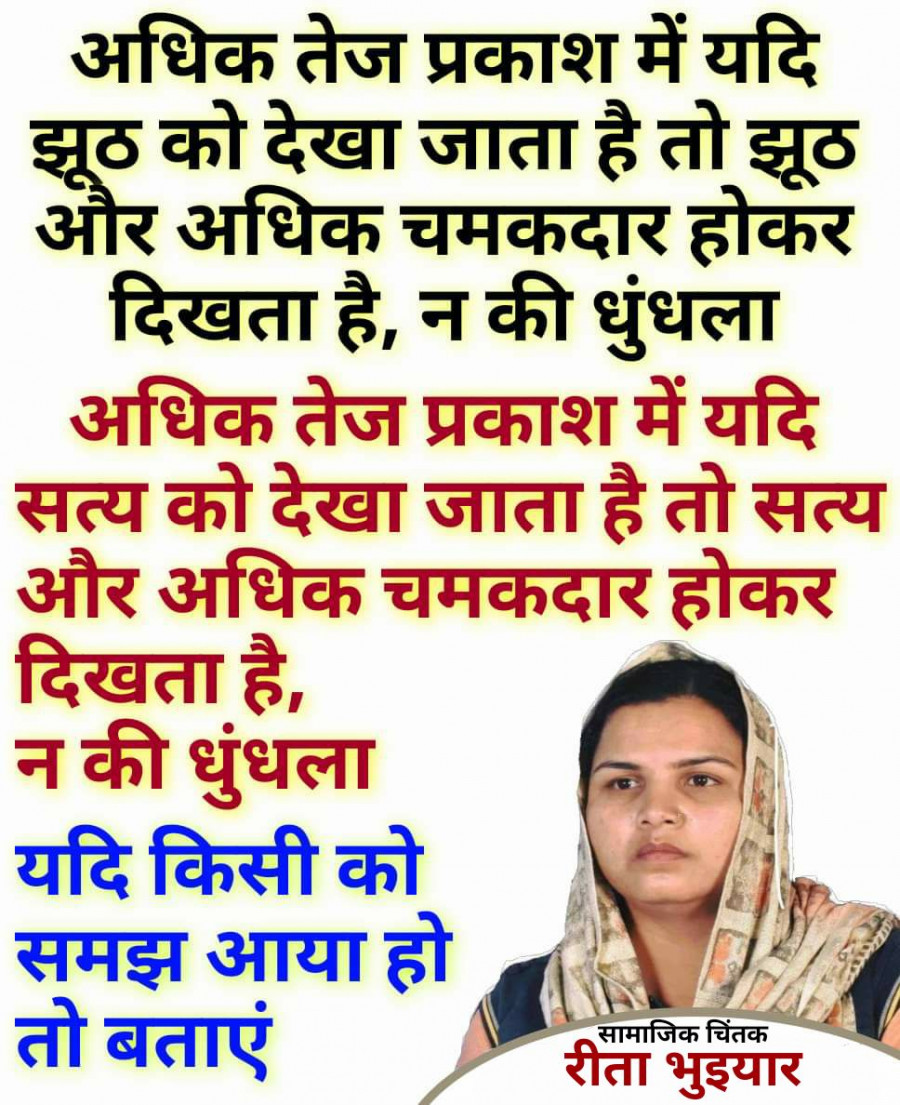 Nov 06, 202270 वर्षो से भारत की जनता स्वम निर्णय नहीं ले पा रही है, जनता को tv अखबार मीडिया पत्रिकारिता संवाद के माध्यम से जो दिखाया जाता है, जनता उस को ही सही मान लेती है, लेकिन सच तो आज भी गांव की उस चौखट पर कुछ और ही दिखता है, आज भी महापुरषों का नाम लेकर जनत