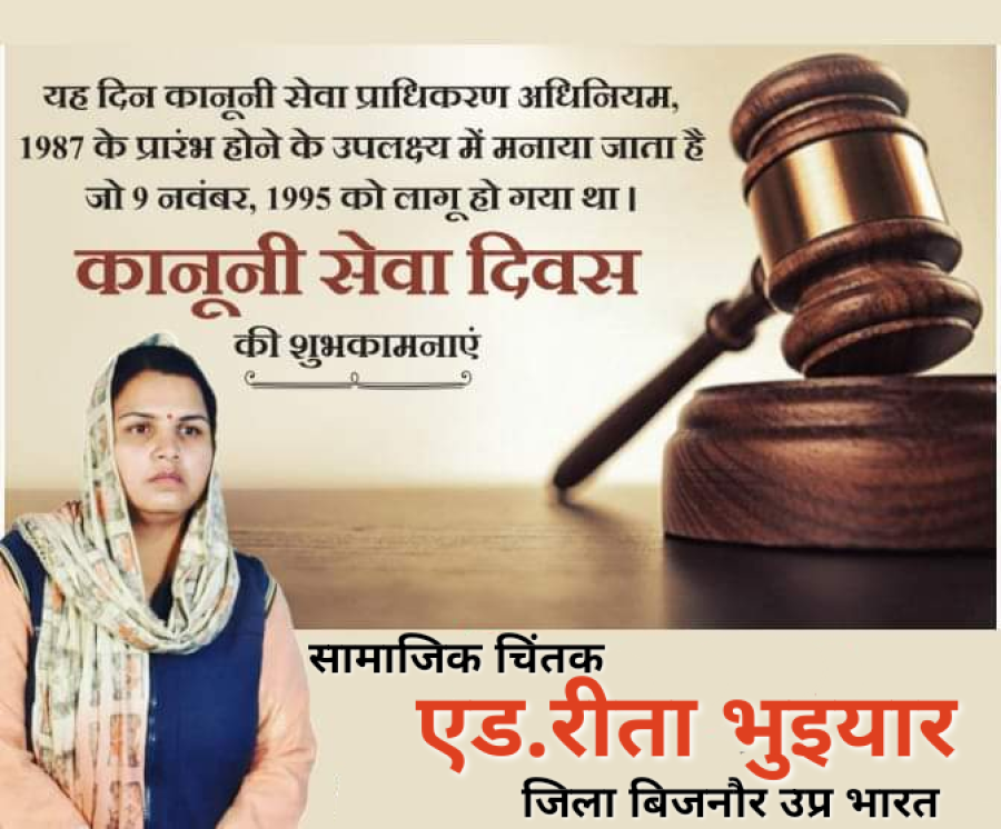 Nov 09, 2023*यह सभी नागरिकों के लिए उचित निष्पक्ष और न्याय प्रक्रिया सुनिश्चित करने एवं जागरूकता बढ़ाने के उद्देश्य से 9 नवंबर को राष्ट्रीय विधिक सेवा दिवस के रूप में मनाया जाता है* 11 अक्टूबर 1987 को कानूनी सेवा प्राधिकरण अधिनियम 1987 अधिनियमित किया गया था, और