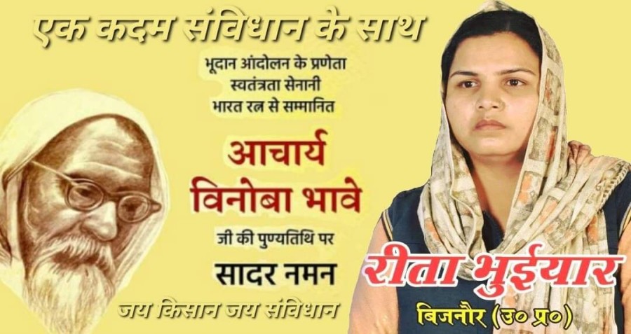*भूदान आंदोलन के प्रेणता स्वत्रंत्रता सैनानी भारत रत्न से सम्मानित आचार्य विनोबा भावे जी की पुण्यतिथ