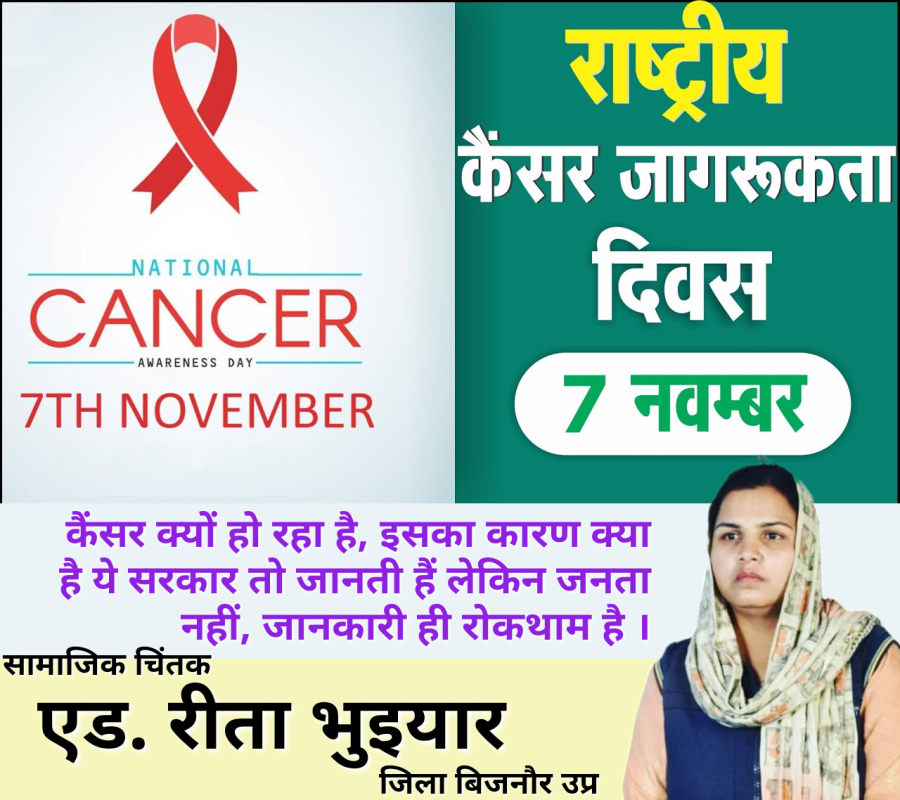 Nov 07, 2023कैंसर को रोकने के लिए प्रत्येक दिन जागरूक होने की जरूरत है, कैंसर वर्तमान में गंदे पानी प्लास्टिक और बढ़ते कैमिकल के कारण आज गांव गांव फैलता जा रहा है, लेकिन उद्योगपति के बढ़ते लालच और सरकार के अनदेखे रवैए के कारण प्रदूषण के साथ कचरा इतना बढ़ा गया है