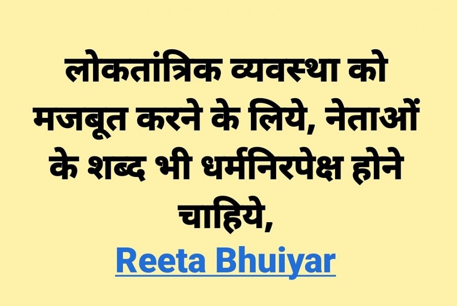 लोकतांत्रिक व्यवस्था को मजबूत करने के लिये, नेताओं के शब्द भी धर्मनिरपेक्ष होने चाहिये, Reeta Bhuiya