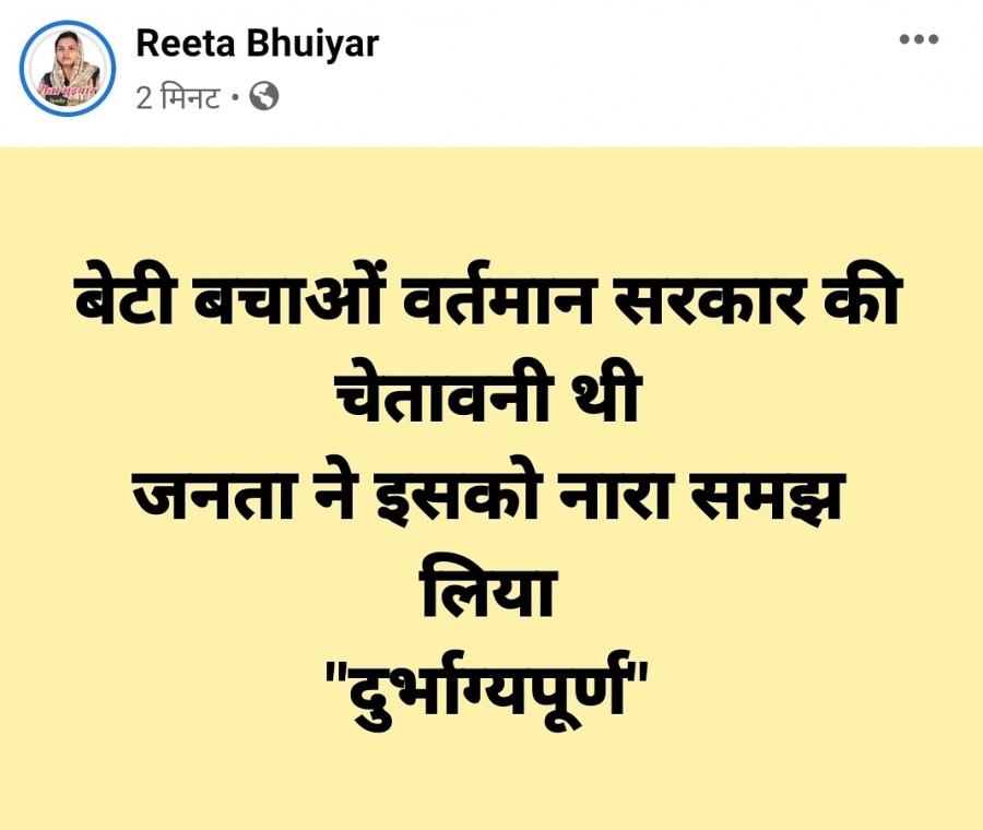बेटी बचाओं वर्तमान सरकार की चेतावनी थी जनता ने इसको नारा समझ लिया "दुर्भाग्यपूर्ण"