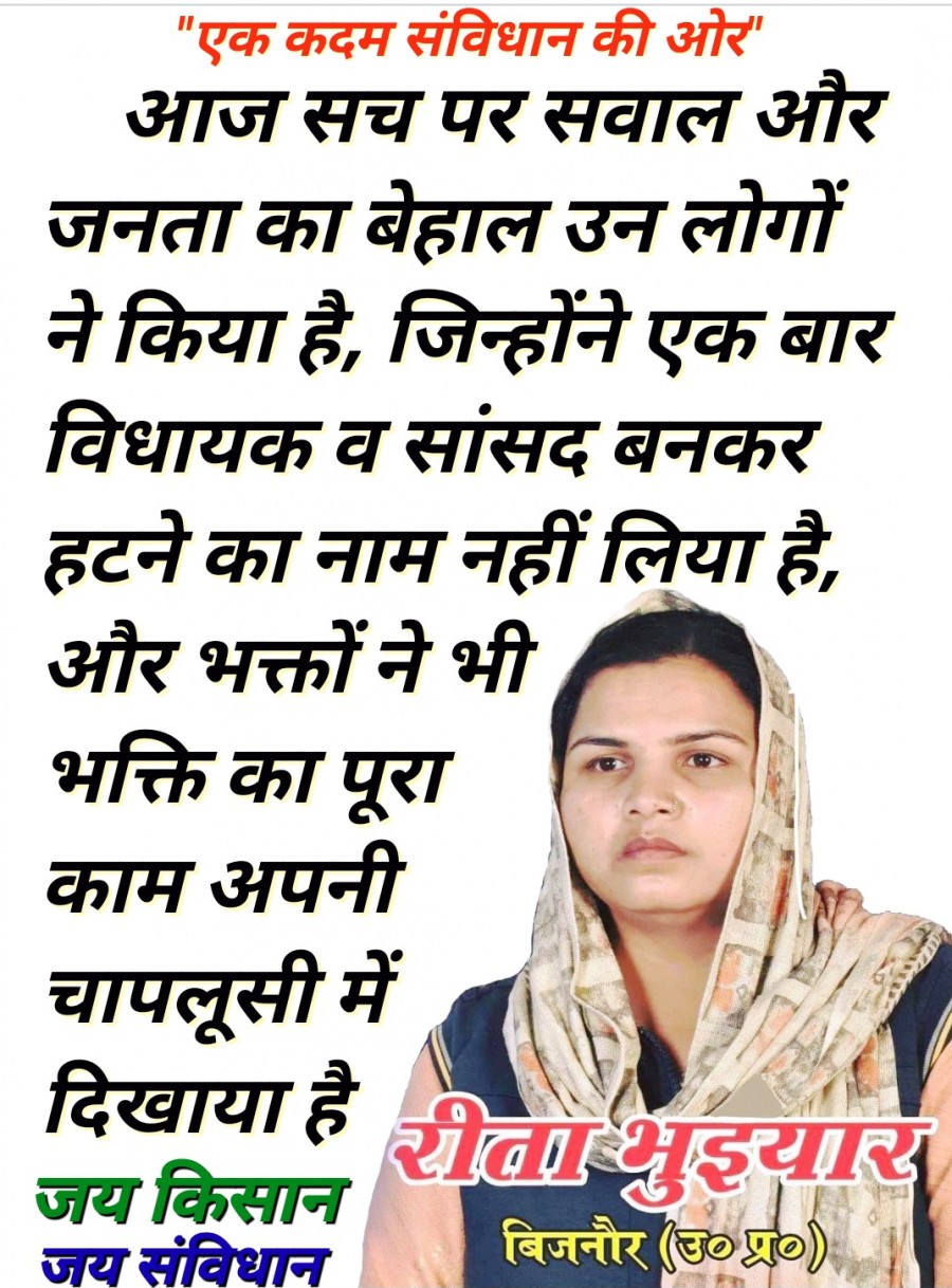 Jan 18, 2021आज सच पर सवाल और जनता का बेहाल उन लोगों ने किया है, जिन्होंने एक बार विधायक व सांसद बनकर हटने का नाम नहीं लिया है, और भक्तों ने भी भक्ति का पूरा काम अपनी चापलूसी में दिखाया है Reeta Bhuiyar