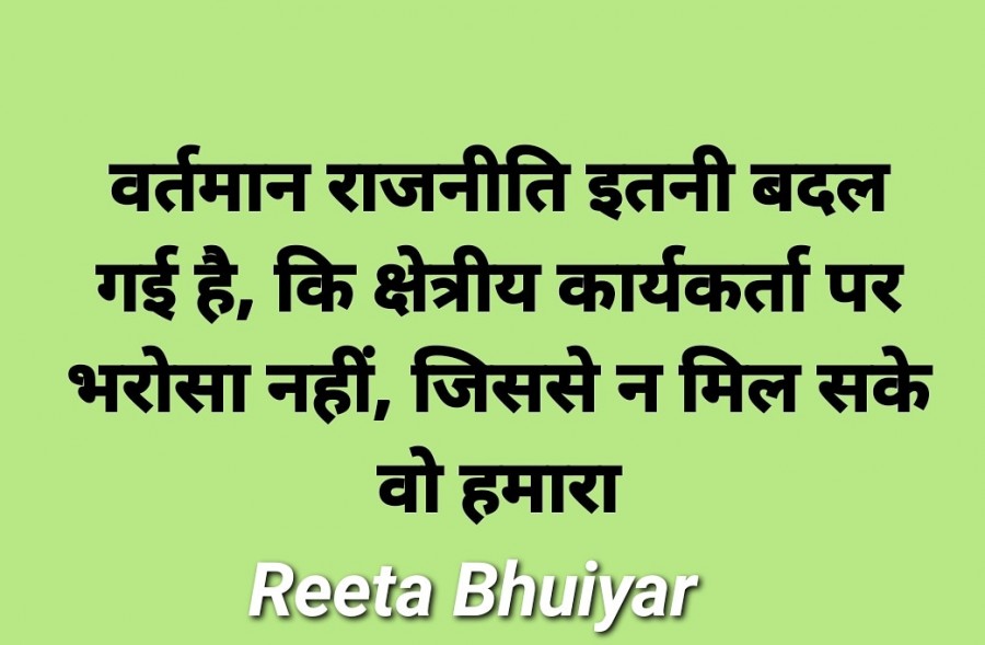वर्तमान राजनीति इतनी बदल गई है, कि क्षेत्रीय कार्यकर्ता पर भरोसा नहीं, जिससे न मिल सके वो हमारा